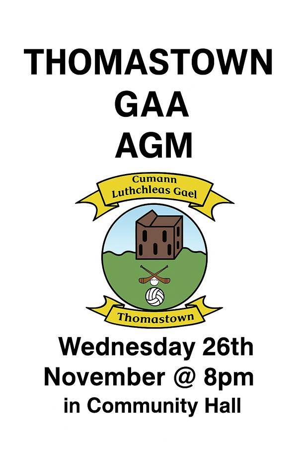 The Thomastown GAA Club Annual General Meeting will take place on: